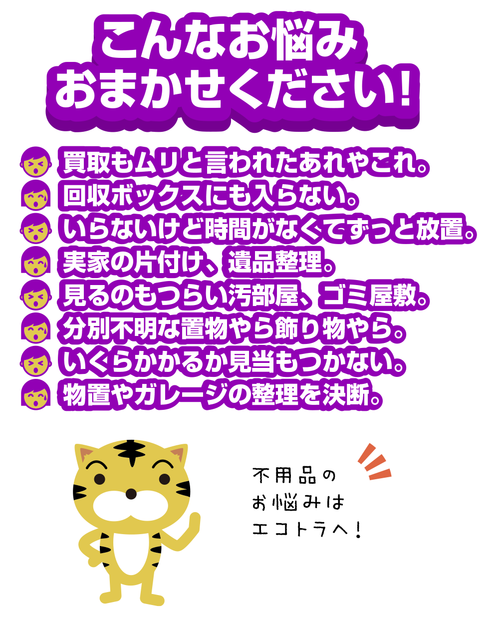 不用品の片付けが面倒くさい、会社で普通には捨てづらい物がよく出る等ご相談に乗ります!